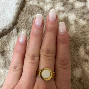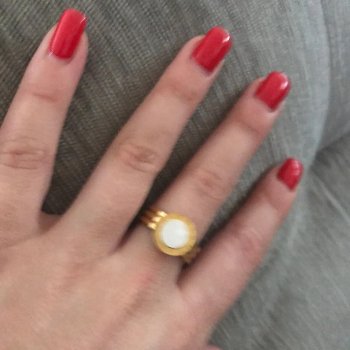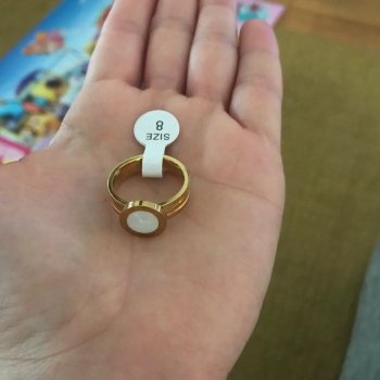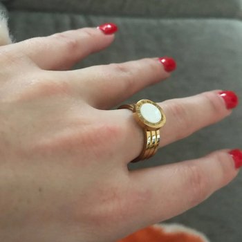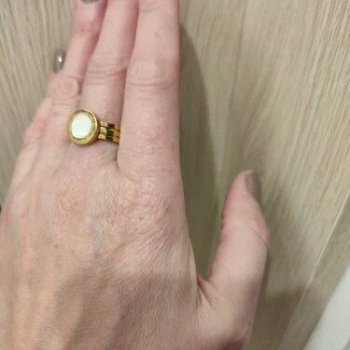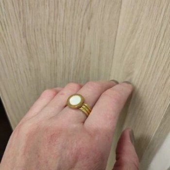 I recently treated myself to this ring and couldn't be happier. The design is absolutely stunning, combining a sleek metallic look with a gorgeous shell-like finish. It's incredibly well-made and feels very durable, yet it has a delicate appearance on my finger. I love how it catches the light and adds a touch of elegance to any outfit. It's definitely a piece that gets noticed and I've received so many compliments on it. I'm so pleased with this purchase and feel like it's a timeless piece that I'll wear for years