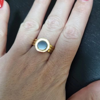 I must say, this ring exceeded my expectations. The design is not only stylish but also timeless, striking the perfect balance between trendy and classic. The workmanship is meticulous, with attention paid to every detail, resulting in a piece that's both sturdy and visually stunning. It's the kind of ring that sparks conversation, as it stands out with its unique blend of materials and artistry. I appreciate how it feels on my finger, comfortable and secure, yet it has a presence that's undeniably impactful. It's become my go-to accessory for all occasions, enhancing my outfits with its subtle elegance. I'm beyond satisfied with this purchase and would recommend it to anyone looking for high-quality, stylish jewelry